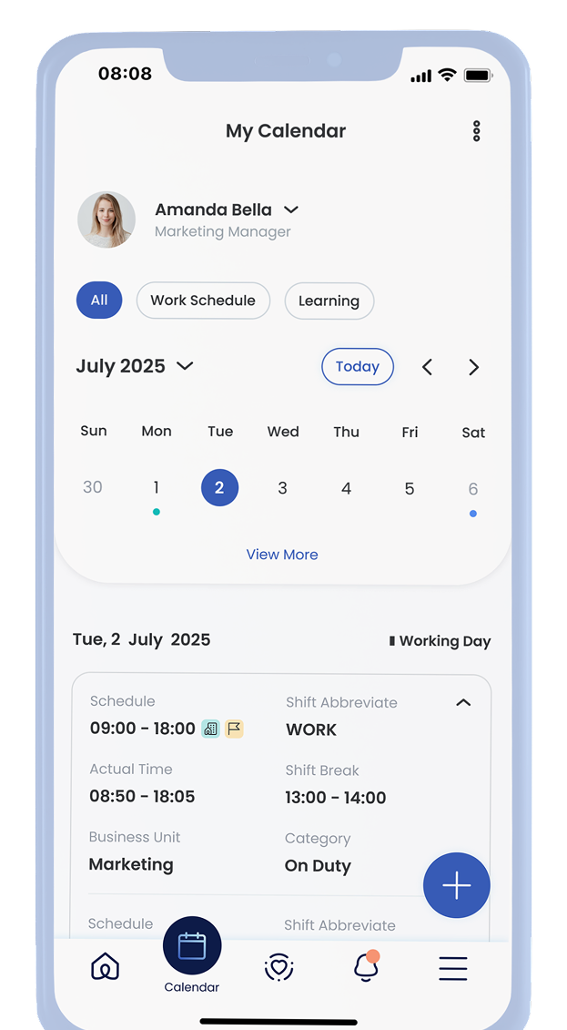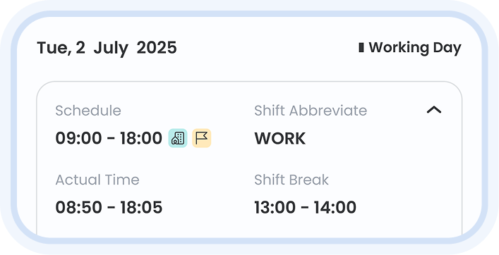 เปลี่ยนจากการบันทึกเวลาการทำงาน หรือการลาแบบเดิมๆ เป็นการจัดการรูปแบบการทำงานบนระบบแบบครบวงจร ทั้งการจัดกะ การบริหารสิทธิการลา และเงื่อนไขการทำงานล่วงเวลาของพนักงานในที่เดียว เพิ่มความสะดวกสบายในการตรวจสอบข้อมูล การบริหารสิทธิการอนุมัติ และเชื่อมต่อข้อมูลอย่างลื่นไหลไปยังระบบเงินเดือน