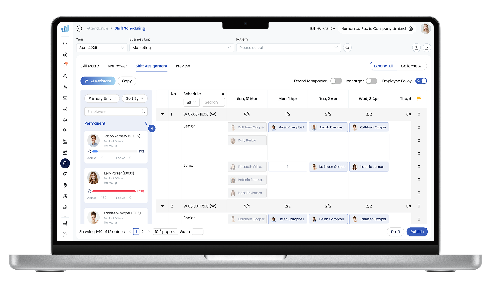 สร้างกะงานอัตโนมัติ โดยสร้างบัญชีกะงาน อัตโนมัติ (Roster) ตามกฎเกณฑ์ที่กำหนดเอง แยกตามทีม, สถานที่ ปฏิบัติงาน,หรือบทบาทหน้าที่