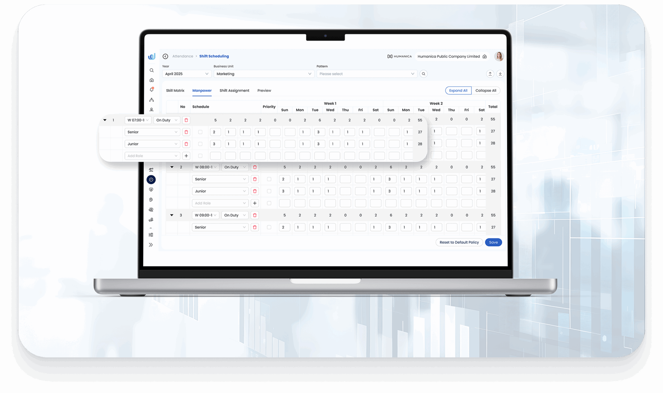 ระบบจัดการกะขั้นสูง สำหรับ การจัดกะงานแบบหมุนเวียน (Rotating shifts) การแบ่งกะ การซ้อนทับกัน และการจัดกะแบบมีเงื่อนไข