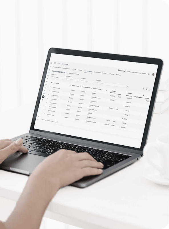 องค์กรจะได้รับการดูแลอย่างใกล้ชิดตั้งแต่วันแรกของการเริ่มให้บริการ โดยทีมผู้เชี่ยวชาญของ Humanica ซึ่งจะประสานงานและทำงานร่วมกับผู้รับผิดชอบงานบัญชีเงินเดือนขององค์กรอย่างต่อเนื่อง เพื่อให้การดำเนินงานเป็นไปอย่างถูกต้อง แม่นยำ และราบรื่นในทุกขั้นตอน