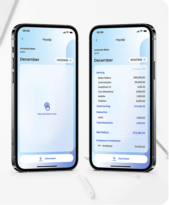Employee Self-Service (ESS) สำหรับพนักงาน ที่ช่วยให้พนักงานสามารถเข้าถึงข้อมูลเงินเดือน ดาวน์โหลดสลิปเงินเดือน ตรวจสอบข้อมูลภาษี และทำรายการคำร้องต่าง ๆ ได้ด้วยตนเองอย่างสะดวกและรวดเร็ว